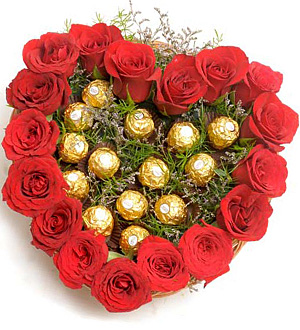 Our Heartily Rocher flowers and chocolate bouquet comes with delightful Ferrero Rocher chocolates and freshly imported roses, impressively arranged in heart shape with lots of love.